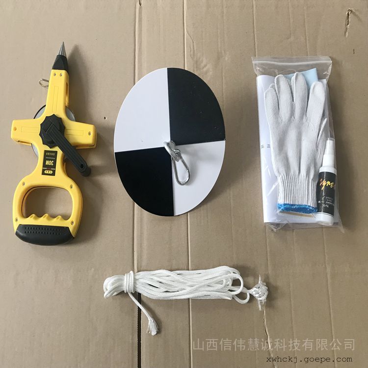 本品分四部分,即主体黑白盘、使盘沉降的不锈钢重坠、卷尺,不锈钢挂钩。