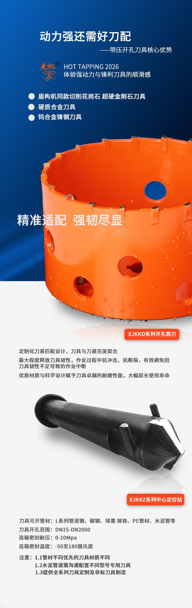 3.液压开孔钻体(XJZY系列):全系采用45#钢制材料,严禁使用铸造承压部件