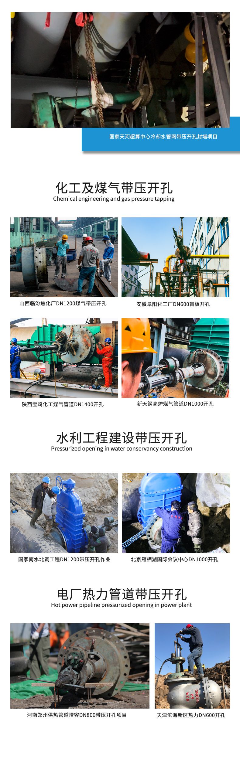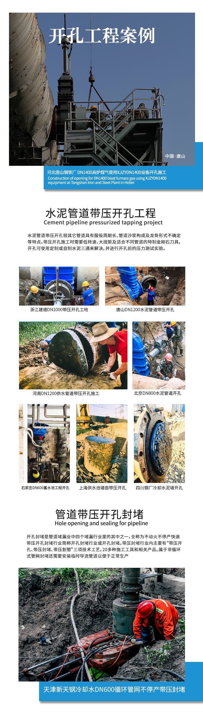 2.适用的管道材质:PE、钢管、合金钢、铸铁、球墨管、水泥管、玻璃钢管、不锈钢管。管道开孔直径 范围:Φ50-Φ1400