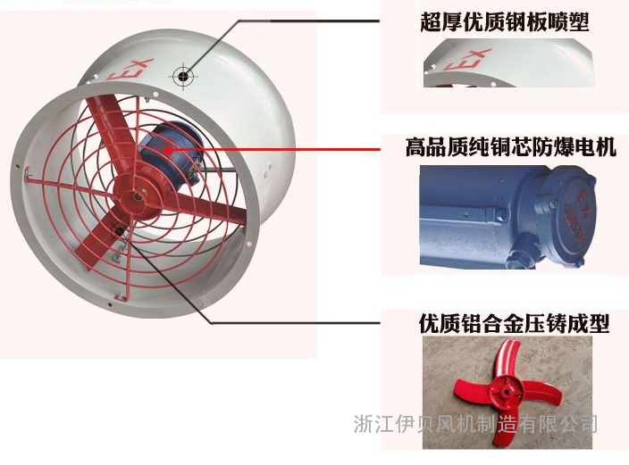 1、防爆轴流风机由防爆电机、叶片、风筒等部件组成。