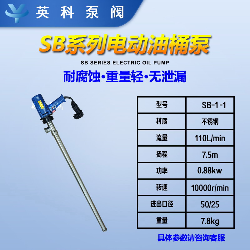 电动油桶泵是本公司技术开发的一种新型产品,具有技术先进,性能稳定,操作方便,质量可靠、性价比高等诸多优点。为了保证产品的品质,我们所有的关键部件均采用原装进口零件;深沟球轴承、氟橡胶骨架油封,轴套分别采用瑞士、日本、台湾的产品。公司拥有完善的成套测试平台,对所有产品都进行性能测试,只有通过了性能测试的泵和马达才能出厂,产品100%进行测试,可以满足您对高品质产品的要求,是目前替代进口桶泵的理想选择。是目前国内唯一可以替代进口产品的理想用品。马达采用国内技术领先的无级可调速马达,具有噪声低,冲击小的优点,并配有过热保护装置,防止马达因过载而烧毁电机,从而保证了马达的高可靠性和耐用性。泵体与电机采用螺纹式法兰安装盘,拆装的时候无须任何工具,这样维护和保养就非常方便了