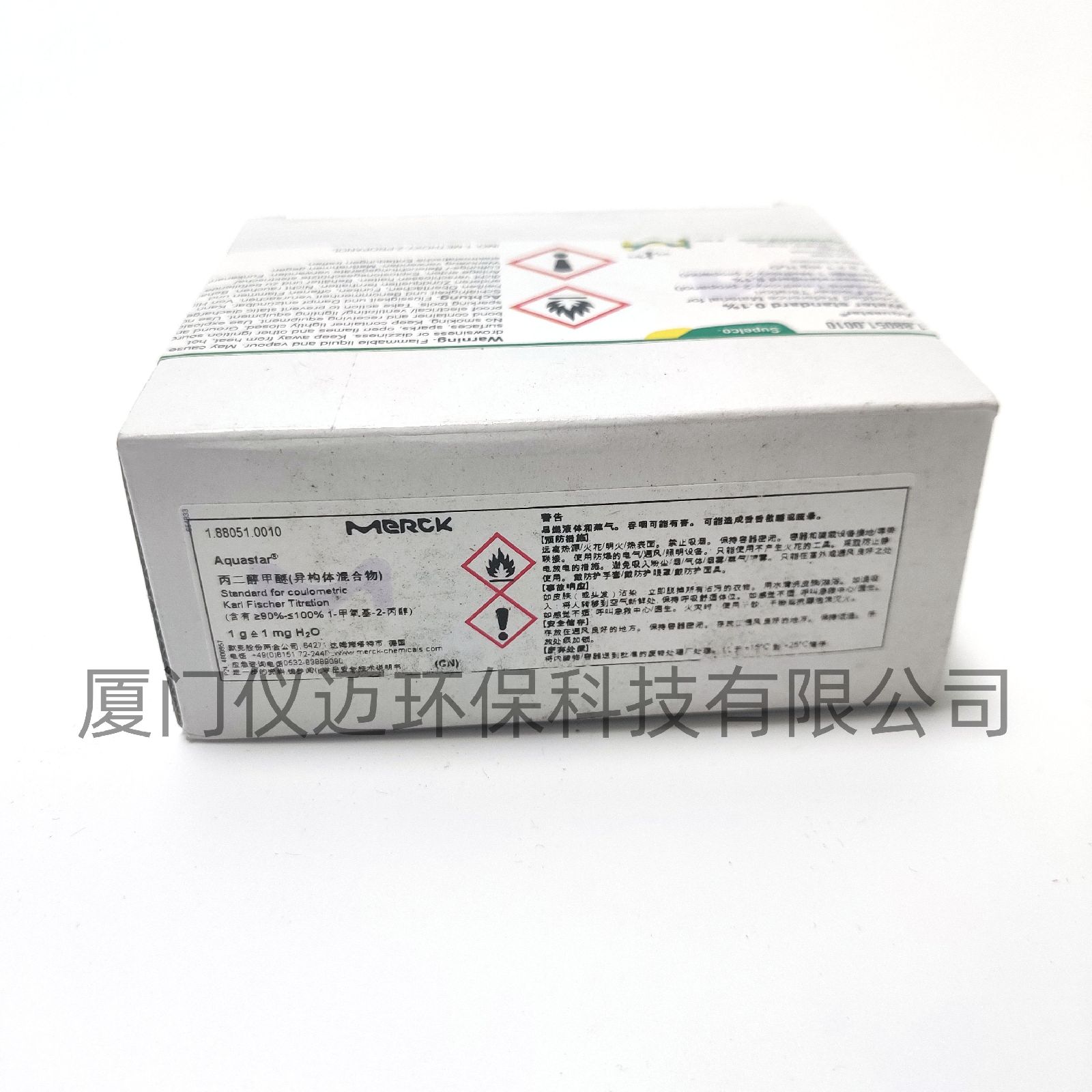 0.1%水标采用高纯水和试剂通过重量法制备而成。其经过DIN EN ISO/IEC 17025认可质控(QC)实验室表征。标准品的水分含量根据ISO 760通过直接库伦卡尔费休滴定测定。