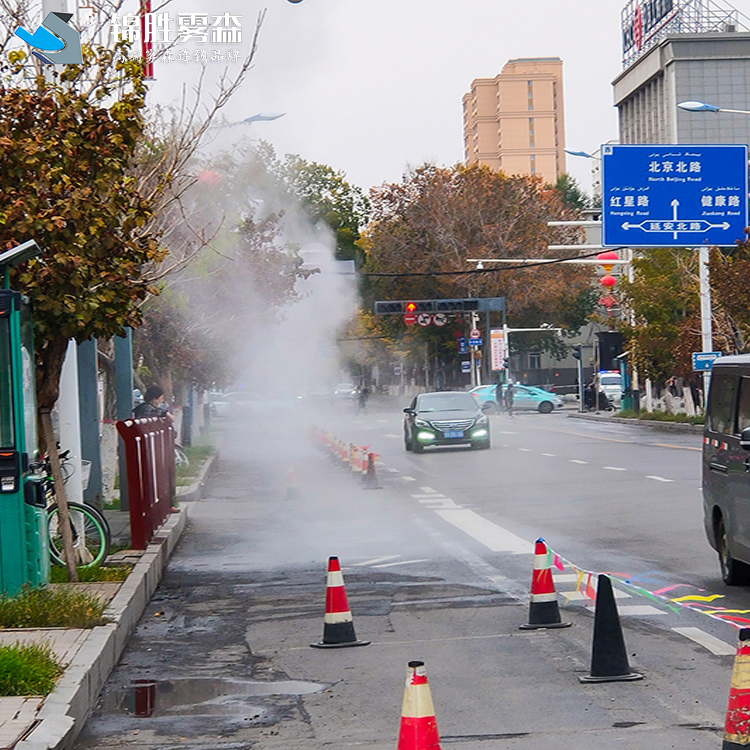 这套系统的核心是高压雾化技术与智能控制的完美结合。系统将处理后的自来水加压至50-100公斤,通过耐高压不锈钢管道输送至路灯杆顶部的专用喷头。110