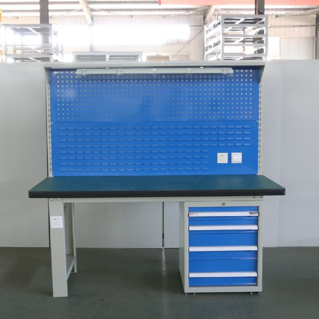 | 1. 防静电工作台的定义与用途 防静电工作台是一种专门设计用于防止静电积聚和放电的操作台,主要应用于电子行业、半导体制造、实验室、精密仪器组装等对静电敏感的场景,可保护静电敏感元器件免受损害,保障生产安全。 2. 核心材料与工作原理 材料: 台面通常采用防静电三聚氰胺高压装饰层压板(防静电压膜防火板),搭配导电基材(如导电型刨花板、石墨型复合板),确保整体防静电性能。 支撑结构多为钢结构(如优质冷轧钢板、不锈钢方管),坚固耐用,部分产品采用铝型材框架。 原理: 通过防静电台面和接地线将静电导入大地,避免静电积累。 部分工作台配备防静电手腕带插孔、导电胶垫等,增强静电释放效果。 3. 主要类型与特点 按材质分类: 不锈钢工作台:耐腐蚀、防尘、防静电,适合实验室或对清洁要求高的环境。 碳钢 / 钢制工作台:结构坚固,性价比高,可定制不同尺寸和承重。 铝合金工作台:轻便、易组装,适合需要灵活布局的场景。 按功能分类: 标准防静电工作台:基础款,满足基本防静电需求。 重型工作台:高承重设计,适合工业生产或重型器械操作。 带附加功能工作台:如配备照明、多层搁板、电源插座、挂钩等,提升实用性。 4. 安装与维护 安装步骤: 确定防静电台垫尺寸,清洁台面及组件。 在台垫下铺设铝箔带,确保电接触良好。 固定台垫并连接接地线(需串联 1MΩ 电阻),确保接地系统有效。 维护要点: 定期清洁台面,避免使用尖锐或腐蚀性清洁剂。 检查接地线和静电耗散性能,确保符合国家标准(如 SJ/T10694-2006)。 避免在台面上放置绝缘材料(如塑料、橡胶),防止静电积聚。 5. 选购建议 根据需求选择: 电子车间优先选择表面电阻在 1.0×10⁶~1.0×10⁹Ω 的防静电工作台。 实验室或精密装配场景可考虑不锈钢材质,兼顾防腐与防静电。 关注细节设计: 台面厚度(常见 25mm、30mm、50mm)、承重能力、调节脚(适应不平地面)。 附加功能(如照明、电源盒、工具挂钩)可提升工作效率。 性价比方案: 预算有限时,可自制防静电工作台(如木桌 + 防静电台布),成本约 80 元以内。 工业采购可选择定制款,支持尺寸、功能个性化设计。 维护,以保障生产安全和效率。 |