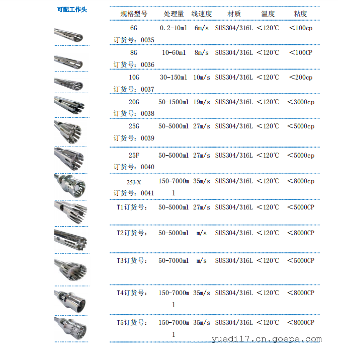 | 规格型号 | 处理量 | 材质 | 温度 | 是否耐压 | 可浸入液体的长度 | 粘度 | 线速度 |