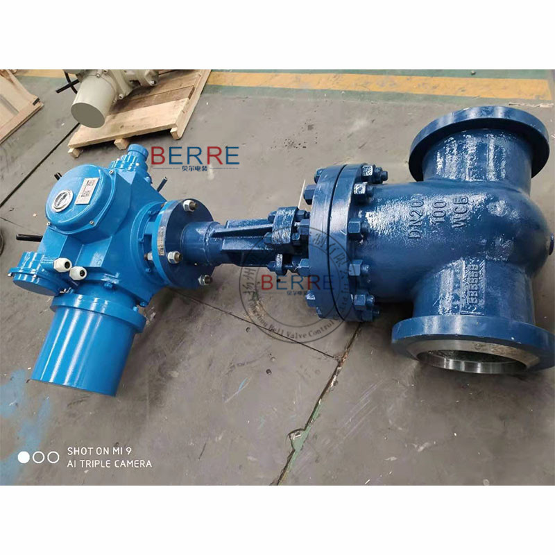 4、电动高压闸阀的关闭和开启由装在阀盖上的电动装置来控制。电动装置分别配有阀门专用电机、减速箱、转矩控制机构、行程控制机构、现场操作机构,手、电动切换机构。阀门的开关均由行程控制机构调整,调整转矩限制机构,可以在行程控制机构失灵的情况下,保护阀门。电动焊接闸阀关闭主要通过电动装置及能够调整的楔式双闸板、万向顶、夹圈等组成,借阀体内导向作升降运动。
