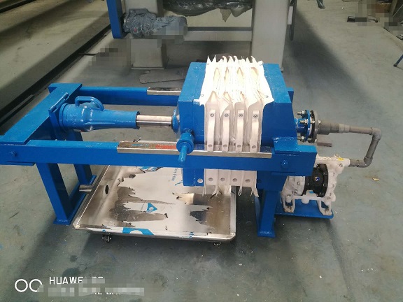 小型压滤机 1平方-3平方压滤机 实验用板框压滤机,兴泰系列小型手动压紧压滤机是采用螺旋千斤顶来作为压紧装置,过滤压力较小,对滤板压紧压力有限,适用于小型过滤实验及小型过滤行业当中,一般过滤压力小于0.4Mpa的过滤领域。经过设计采用高强度的液压螺母、液压拉伸器的同时,作为动力源同步引进了超高压手动液压泵,作为压滤机压紧装置。提高了压滤机压紧时对滤板的压紧压力,能确保压滤机的可靠性和稳定性。整机结构设计合理,性能稳定可靠,操作简单,维修方便,适用范围广,是悬浮液分离的理想设备。