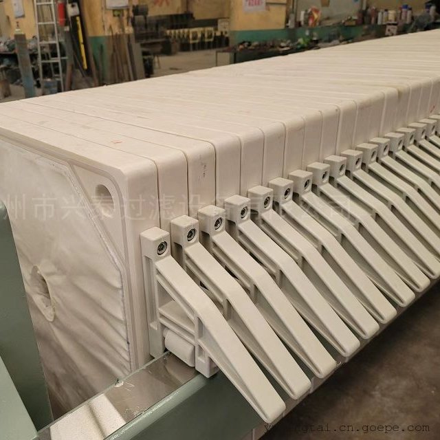 兴泰系列板框厢式压滤机是一种由滤框组成的滤室,在压力作用下,利用过滤介质把固体与液体分开的设备。它采用增强聚丙烯滤板、滤框采用模压而成,强度高,重量轻,耐腐蚀,耐酸碱,其设计合理,结构简单,性能可靠,使用方便,维修容易,可适用于化工、石油、冶金、制药,食品及环保等行业的固液分离工序。用途广泛,适应性强。