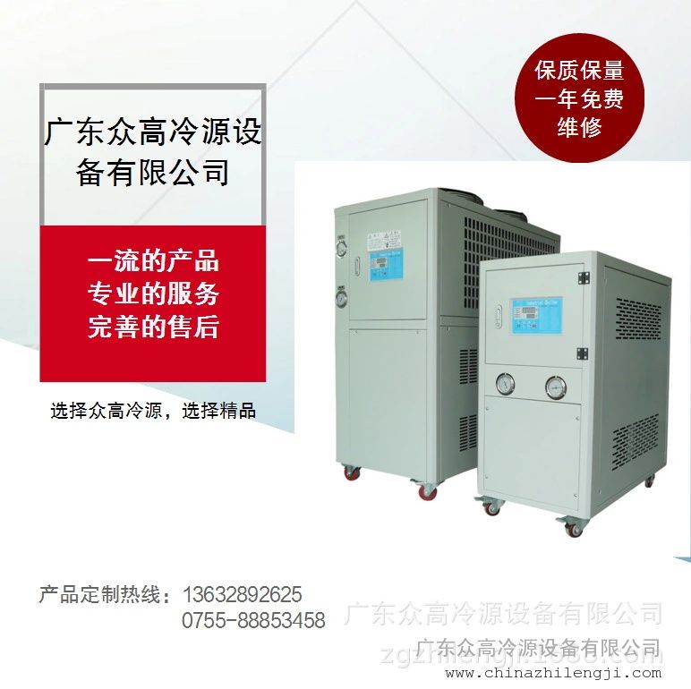 冷水机,在行业中分为风冷式冷水机和水式冷水机两种,广东众高冷源冷水机在温度控制上分为低温冷水机和常温冷水机,常温温度一般控制在0度-35度范围内。低温机温度控制一般在0度-零下100度左右范围。