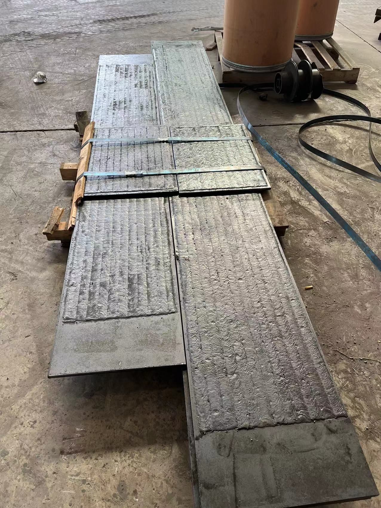 Q235基板+碳化铬合金耐磨层组成。堆焊耐磨板方式: