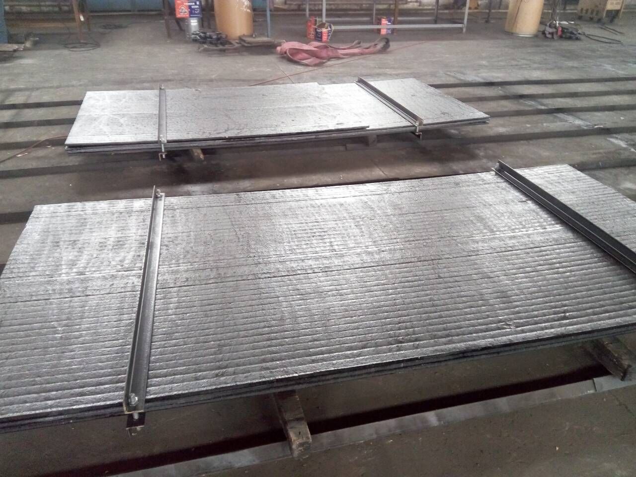 Q235基板+碳化铬合金耐磨层组成。堆焊耐磨板方式: