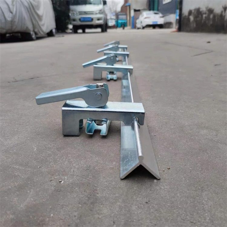 3、手动旋转压紧手柄,适当时向上(下)推到底,可对角铝施加足够的压力,保持裙板位置,且压紧手柄不会松动脱落。