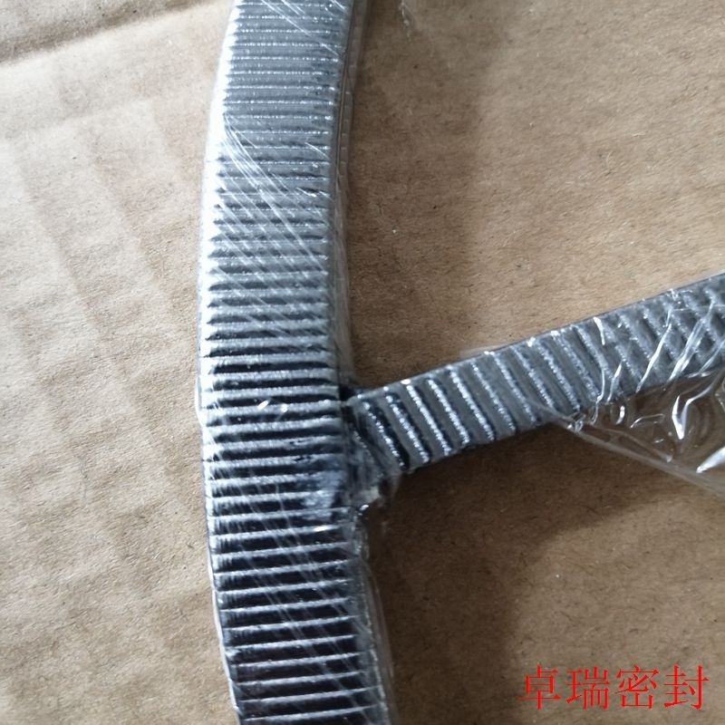| 金属齿形组合垫片属于一种金属复合垫片,一般先用精密的车床或专用铣床在金属平垫片的二面加工成同心的90度夹角形成波形的锯齿形沟槽,由于 与其它密封面的接触是多个同心圆的线接触,因此具有迷宫密封作用,根据不同的介质和工况条件,可选择柔性石墨、PTFE、无石棉板或其它一些 软金属,粘贴在垫片的二面,利用软性覆盖层的密封性以及金属的强度、弹性好的优点,以达到更好的密封效果,大多数情况下我们推荐石墨作为 密封层,当介质对石墨产生反应或要求洁净环境时我们建议选择新近推出性能卓越的膨体四氟作粘贴层层,一般不需要很大的压紧力,即可达到密封效果。 齿形组合垫片也可不带覆盖密封层直接使用,也能达到良好的密封效果,但在高压场合中容易对法兰的表面造成损坏。所以一般要求密封面的粗糙程度在 Ra1.6um以上。 特殊工况应用如极高温,强腐蚀等需特殊材质金属齿形组合垫片我们也可生产如下一些特材可要求: 不锈钢304L,321,316TI,309,347,410,双相钢(2205,31803),蒙乃尔MONEL(400),铟科镍INCONEL(600,625),INCOLOY(800,825), 哈氏合金HASTELLO(B2,C276),钛(T2)等特殊不锈钢或合金材料。 金属齿形组合垫片性能特点: 1.较低的预紧力,即使在压力较高的环境下也有良好的密封效果,尤其适合于高温、高压,工况条件交变的场合是传统金属缠绕垫片和金属包覆垫片 的理想替代品。 2.金属齿形组合垫片对密封表面不损伤,容易拆卸。 3.金属齿形体部分可以重复使用这对于较大型的垫片或特殊材料的垫片如热交换器垫片等有较重要的意义。 金属齿形组合垫片应用范围: 齿形组合垫片主要应用于石油、化工、冶金、电力、船舶、机械等行业的中、高压力和高温的压力容器,热交换器、冷凝器和管道法兰的 连接处密封。 ![]() ![]() ![]() ![]() ![]() |