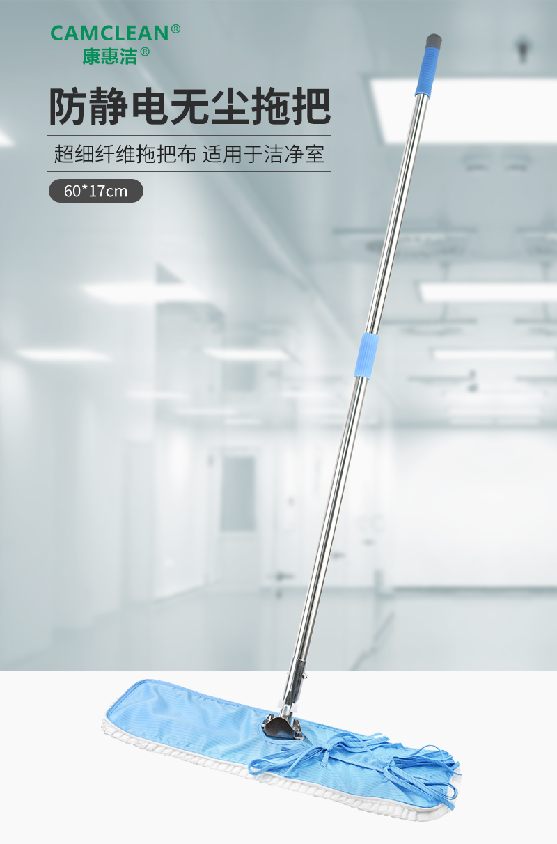 康惠洁无尘拖把静电超细纤维布头平板除尘药厂洁净区车间清洁拖把60*17cm
