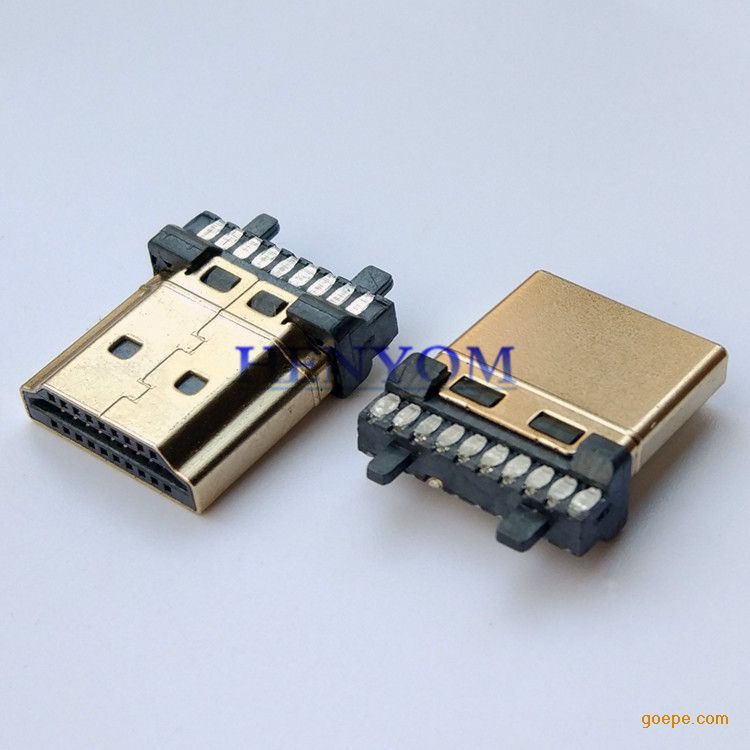 HDMI 19 20P焊线公头 加锡镀金 A型带柱