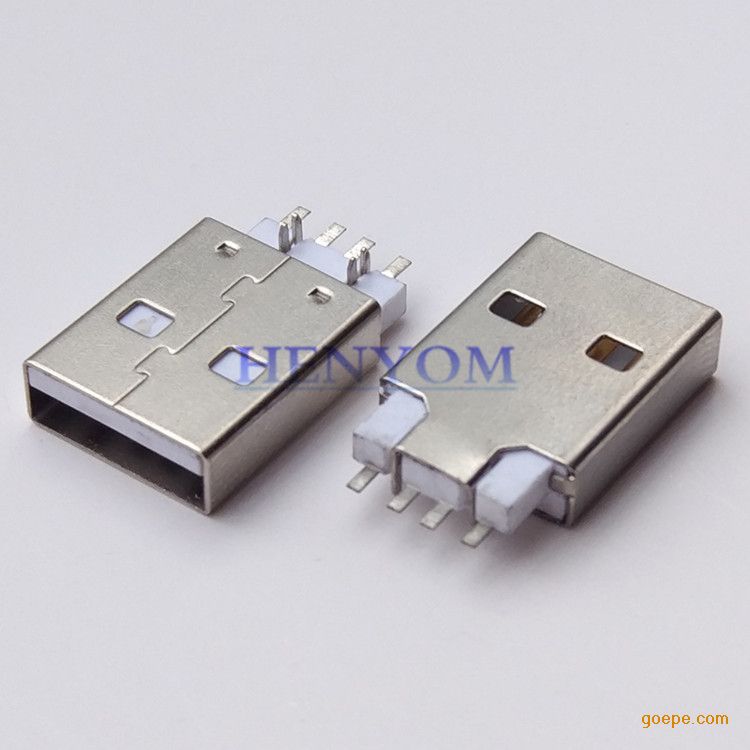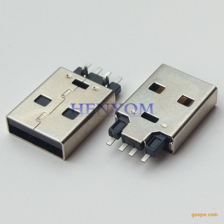 USB A公180度贴板 沉板SMT贴片式 反向黑胶