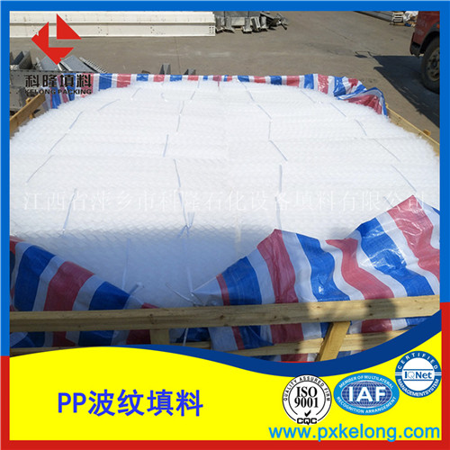 项目安装现场:250YPP高效波纹填料及格栅与PP丝网除雾器