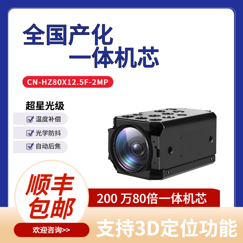 KONFEZI全国产200万高清一体化80倍超长焦可见光机芯 1000mm焦距CN-HZ80X12.5F-2MP