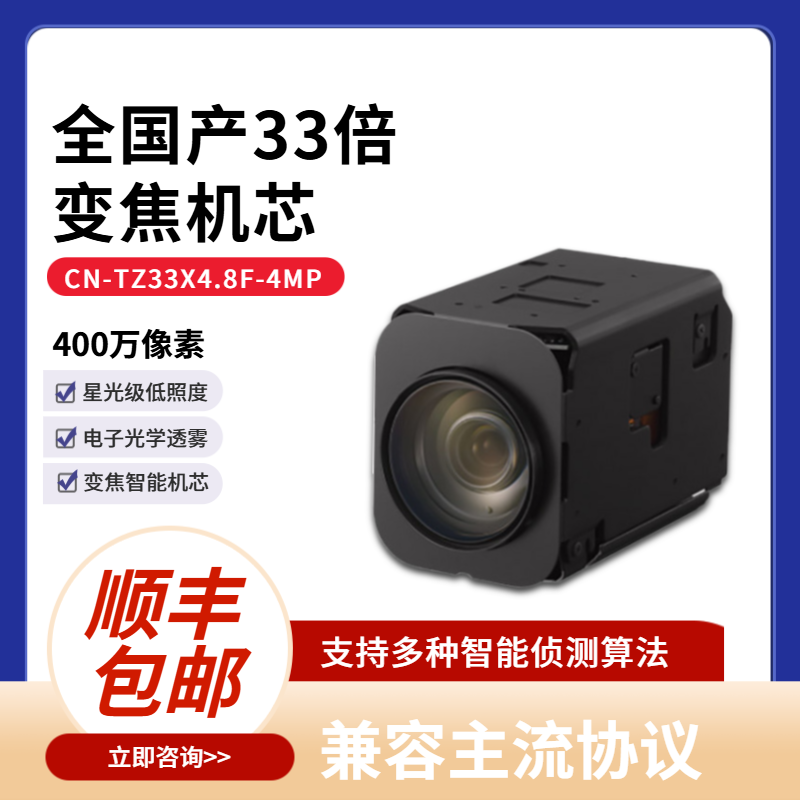 KONFEZI全国产33倍光学变焦一体机芯 4.8-158mm焦距 400万星光级低照度CN-TZ33X4.8F-4MP