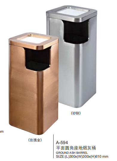 平面圆角座地烟灰桶,不锈钢圆角烟灰桶,玫瑰金圆角带烟灰缸