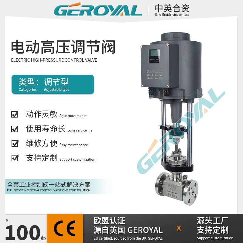GEROYAL精欧电动高压调节阀 电动不锈钢法兰 阀门870G
