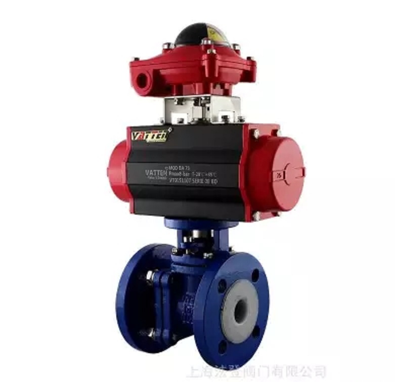 VATTEN气动衬氟法兰球阀 化工腐蚀废水排放气动阀VT2BDW23A