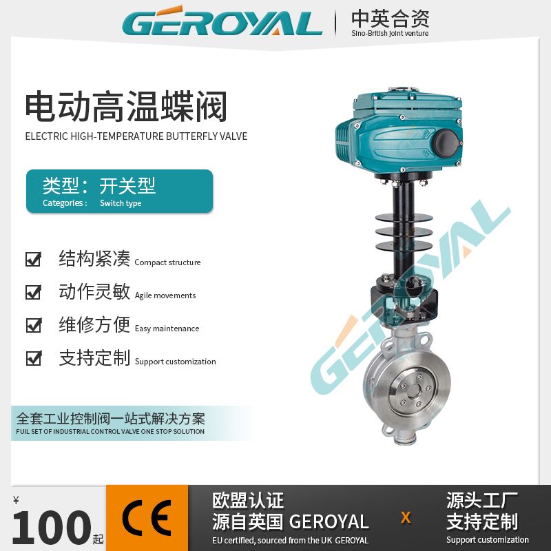 GEROYAL精欧电动高温蝶阀 电动不锈钢蝶阀 电动三偏心蝶阀720C