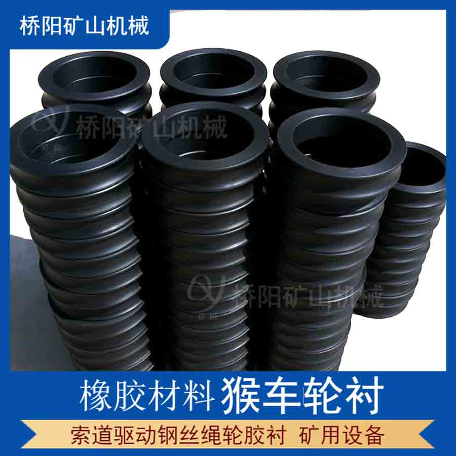 桥阳矿山多种规格钢丝绳驱动托绳轮胶衬 橡胶材料猴车轮衬