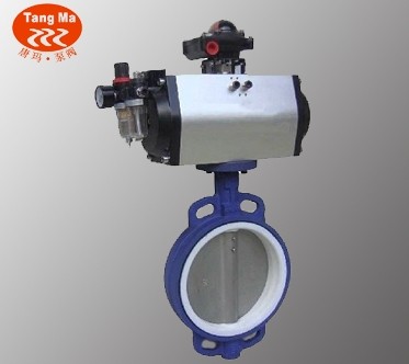 D671F四氟密封气动对夹式蝶阀,GT执行器四氟密封蝶阀