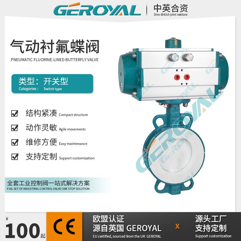 GEROYAL精欧 气动衬氟蝶阀 气动碳钢对夹式蝶阀 气动中线蝶阀750F