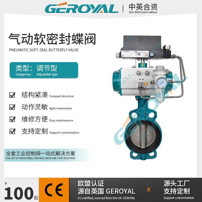 GEROYAL精欧气动中线蝶阀 气动碳钢软密封调节蝶阀710M