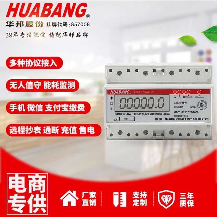 HUABANG三相三线导轨式电能表液晶显示低压380VDTSU866