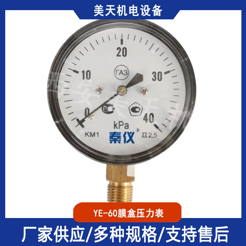 美天机电YE-60膜盒压力表 锅炉通风体管道微压测量